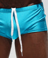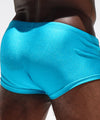 Made from premium stretch-nylon with a lustrous Fiji blue hue comes a new variation of one of RUFSKIN's signature sport shorts -- Designed with the traditional Brazilian jujitsu short in mind, the hem is slanted to show off the quads, while the body-hugging fit makes a killer butt. Seamless back for a clean look, sporty flat-lock stitch along the front, waistband embellished with silver ram head rivet.