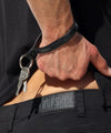 Hand-crafted keychain built using genuine, jet black leather. Designed with a seamless loop for effortless wear around the wrist or secure attachment, elegantly finished with a chrome split-ring and adorned with RUFSKIN's matte black plated logo.