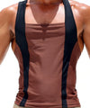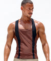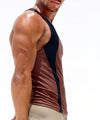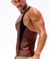 RUFSKIN® 303 BROWN Matte Stretch Nylon Sportswear Tank Top with Color Block Details