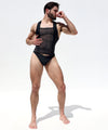 The Bonucci fuses RUFSKIN's signature sport tank design with contrasting, jet black fabrics: The body is crafted from transparent stretch tulle, while stretch nylon shoulder panels extend from the back vertically down the torso ending at the contoured hem. Built with high stretch and shape retention, this tank finds the perfect balance between performance and breathability, just as ideal for the gym as it is with denim. Matte black rivet front left.