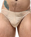 The return of the T-Back crafted from transparent stretch tulle with a rich nude hue, BRAVO serves as a window to your physique. An updated contoured pouch is lined for extra comfort and support while the mesh fabric allows full breathability, branded with a silver rivet at left hip.