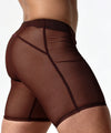 RUFSKIN's signature biker short crafted from premium, transparent stretch tulle in a rich deep brown. The see-through fabric serves as a window to your physique, featuring 4-way stretch for comfort without compromise, while a back yoke enhances glute definition. A smooth elastic waistband branded with a bronze rivet ensures an optimal fit, finished with a faux fly and tonal stitching.