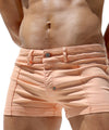 CHALLENGER is THE Summer short, made from super soft stretch cotton twill dyed with an organic "sun kissed" apricot hue. Sewn with tonal stitch, the front features the classic pinch stitch from belt loop to hem and sits right at the quads. Darts at the back create an optimal fit and hug the rear, designed with a back patch pocket for the essentials. Button fly, silver hardware, throw on and wear anywhere.