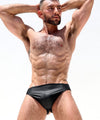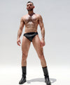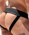 RUFSKIN's take on the dance belt, this jockstrap is made from a rubberized spandex with a matte finish. Designed with a thick enclosed elastic waistband for extra support, the pouch features a dart to hold everything into place, soft elastic hugs the rear. Signature ram head rivet back right.