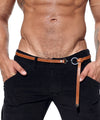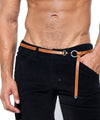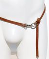 Crafted from luxe caramel colored leather, this distinctive belt accessory is elevated with polished chrome details, including RUFSKIN’s signature branded hook and ring. Designed to tie at the hip, accented by a sleek chrome metal tip and silver rivet.
