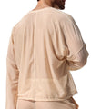 This long sleeve crew neck top is crafted from premium, transparent stretch tulle in a rich nude. Designed with a slightly relaxed fit, it crops just above the waist, while signature kimono inspired-sleeves add fluid movement. Sleek vertical front and back seams sewn with tonal thread enhance the structure, finished with a silver rivet detail at left hem.
