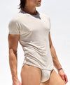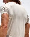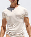 A new essential cut from buttery-soft stretch rayon in sun-warmed beige, this short sleeve crew neck features RUFSKIN’s signature kimono sleeve construction—fluid through the shoulder with a natural drape that hugs just right. Minimal and sculpted, it moves with the body while keeping things effortless. Finished with a silver rivet at the left hem for a clean hit of branding.