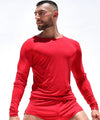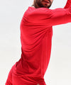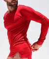 With inspiration from the traditional Japanese kimono, this long sleeve top features an asymmetrical neck that extends diagonally across the chest and highlights the pecs. Built with RUFSKIN's signature kimono sleeve, a staple design feature from the early days, made from supple stretch rayon with a crimson red tint. Lightweight and flowy, an effortless top subtly branded with a silver rivet at left cuff.