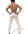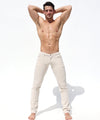 The new Gianni pants blend ultra-soft, velvety stretch corduroy with RUFSKIN's signature slim-fit 5-pocket design. Over-dyed in a fresh bone hue with tonal stitching and silver rivets, they offer a snug, body-defining fit that moves with you. A low-rise cut, contoured back yoke, and sharp back patch pockets enhance the silhouette, finished with a button fly and tan leatherette patch back right. Comfort, stretch and steeze all in one. Note: for a more relaxed fit, go a size up.