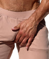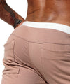 Athleisure wear redefined, these comfy sport-lounge pants are made from cappuccino toned, stretch french terry cotton. Fitted up top, a back yoke hugs and frames the rear, designed with a relaxed flare that kicks in mid-calf. The back of the waistband is ivory in tone, branded with a matte white heat transfer logo. Back patch pockets for the essentials, front slant pockets also lined with ivory cotton.