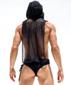 RUFSKIN® MAYENCE BLACK Sheer Stretch Tulle Signature Open-Side Hooded Tank Top