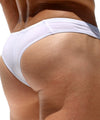 Super cheeky but not quite a thong, this underwear brief is made from soft, stretch interlock twist yarn in optic white. Lined pouch, diagonal back seams to shape the rear, comfy and effortless. Branded with tonal heat transfer front left. A RUFSKIN.com exclusive.