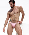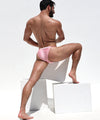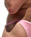 Crafted from premium stretch nylon with rose pink luster, this Rancho Riviera version of RUFSKIN’s signature Euro-bikini blends heritage style with modern detail. The low-rise waistband is accented by an iridescent plated ring for a flash of shine, while the glute-enhancing back yoke sculpts the rear with clean, confident lines. A contoured, lined pouch ensures a secure, flattering fit, finished with tonal stitching and a matte white branded rivet.