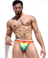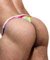 A celebration of color and confidence, this vivid thong silhouette is crafted from premium stretch microfiber with a custom-engineered sublimation print. Stripes and waves in bold, radiant hues wrap the body in just the right places, sculpting and enhancing the form. Finished with a faux fly with inner branding, tonal stitch, and swim 2025 logo mid-back.